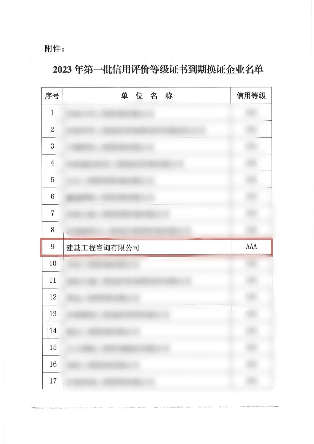 近日,河南省注冊造價(jià)工程師協(xié)會(huì)發(fā)布了《關(guān)于2023年第一批河南省工程造價(jià)咨詢企業(yè)信用評價(jià)等級證書到期換發(fā)新證的通知》。建基咨詢再次榮獲“工程造價(jià)咨詢企業(yè)AAA級”信用評價(jià)等級。