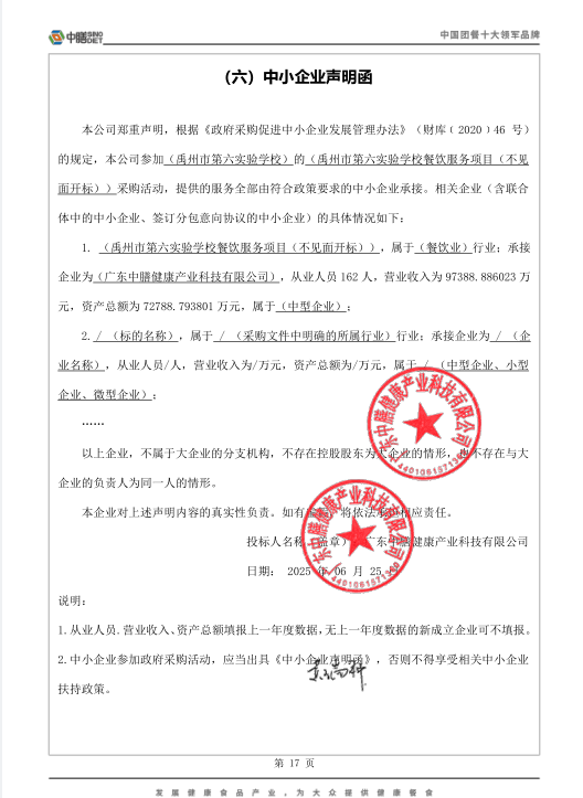 YZCG-DLG2025028 | 禹州市第六實驗學(xué)校餐飲服務(wù)項目 | 廣東中膳健康產(chǎn)業(yè)科技有限公司 | 廣州市黃埔區(qū)新陽西路 38 號 1001-1、1001-2、1001-3 房 | ||||